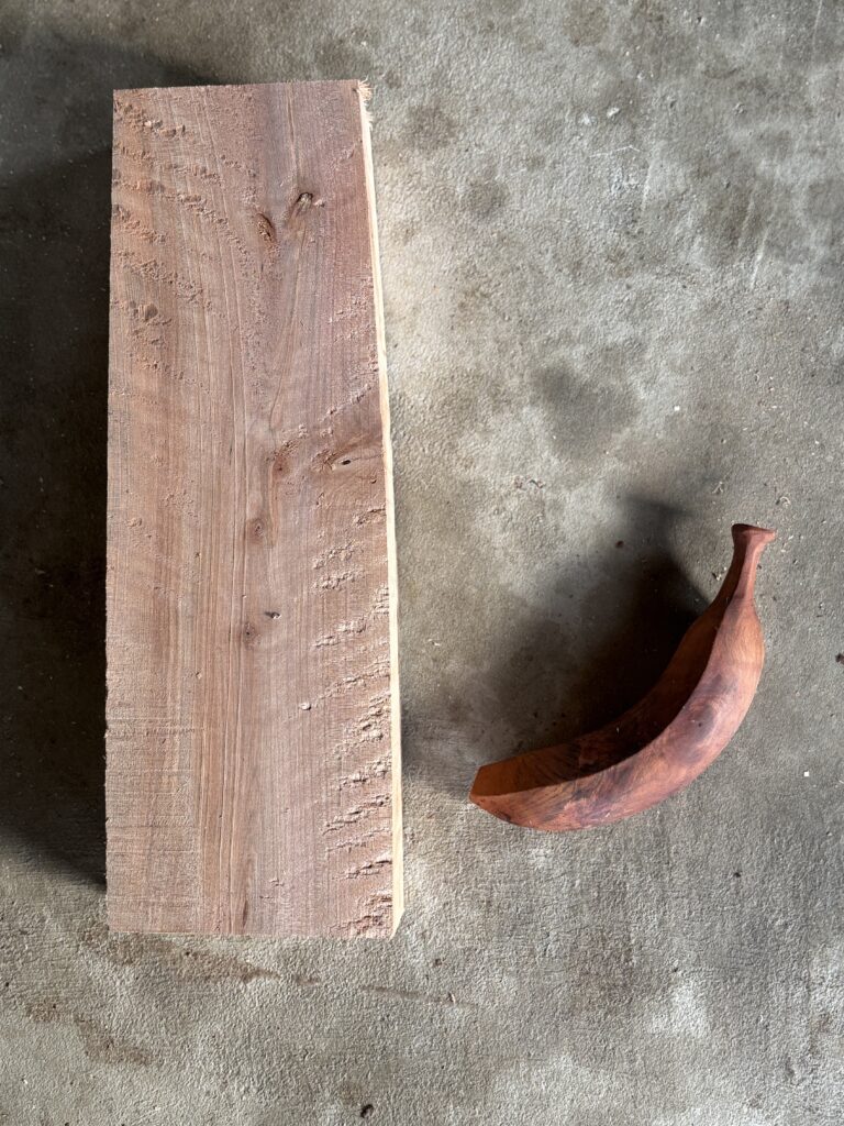 材としてはやや硬めで、加工は少し大変ですが、削っていると香木のような独特の香りが漂います。市場にはほとんど出回らない珍しい木材です。