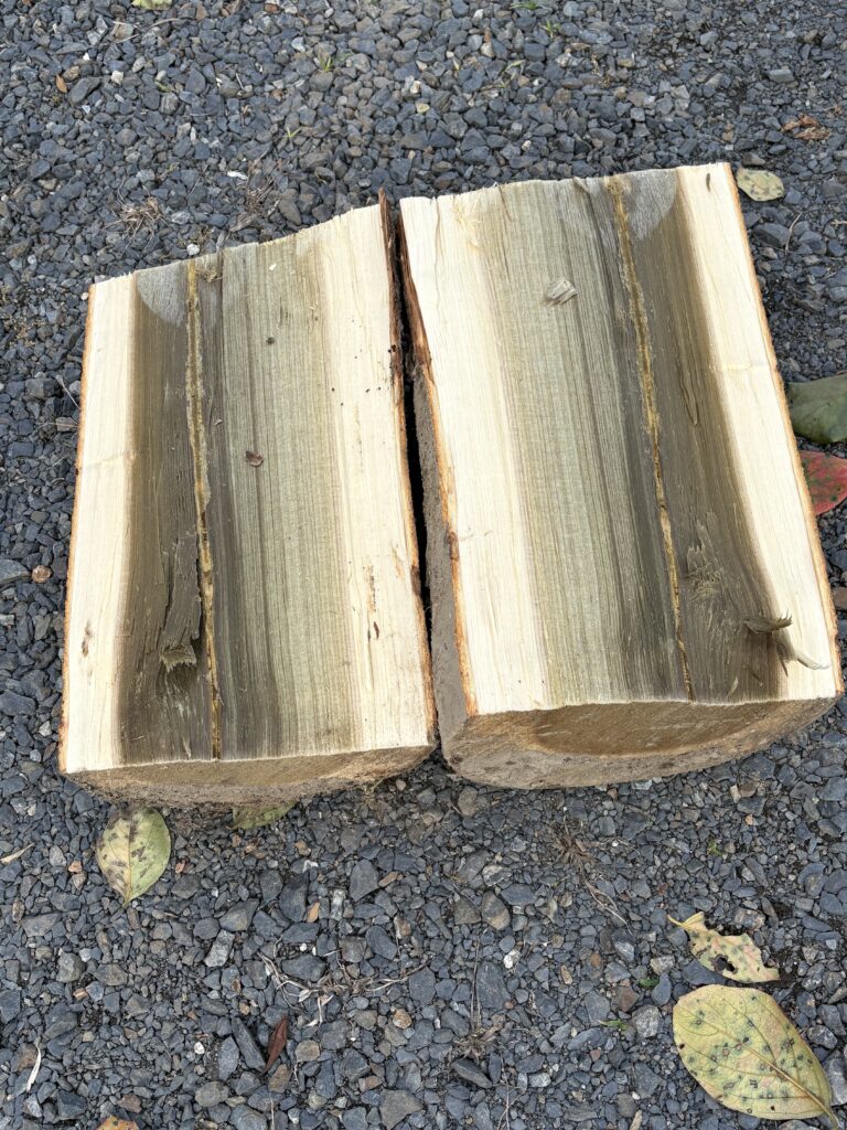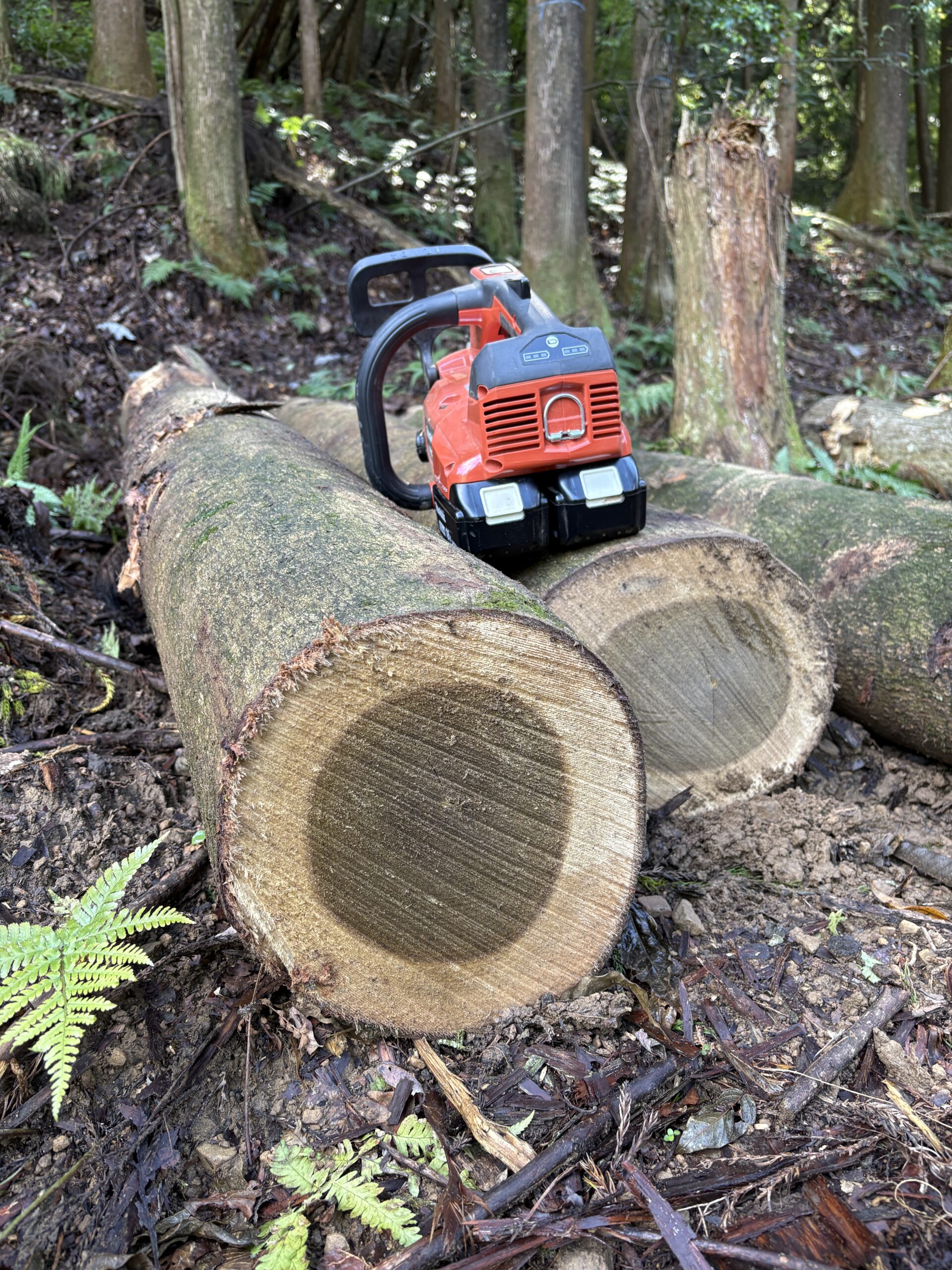 チェンソーでもストンと入る感じで、まさに“素直な木”という印象です。