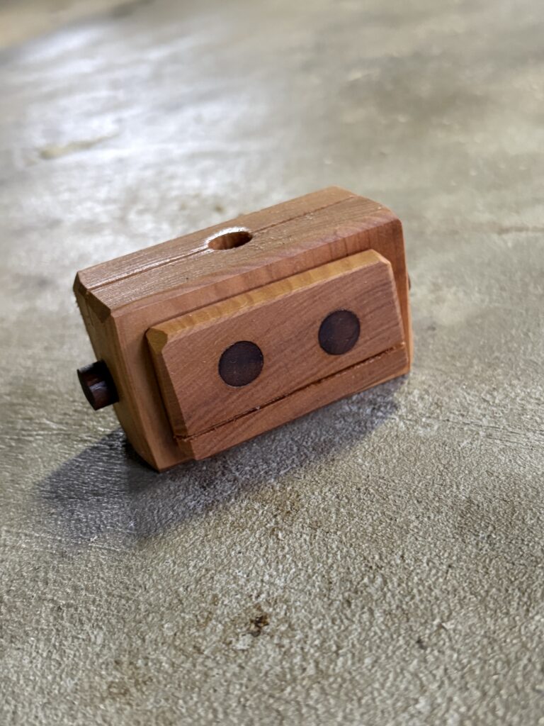 今回は、カツラの木で小さなロボット型のブロックを作ってみました。