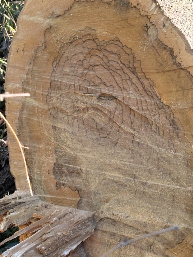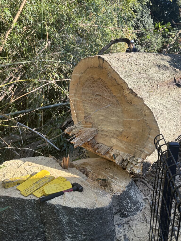 立派な大木で、伐採した木口を見ると、長い年月を生きてきた年輪がぎっしりと詰まっています。