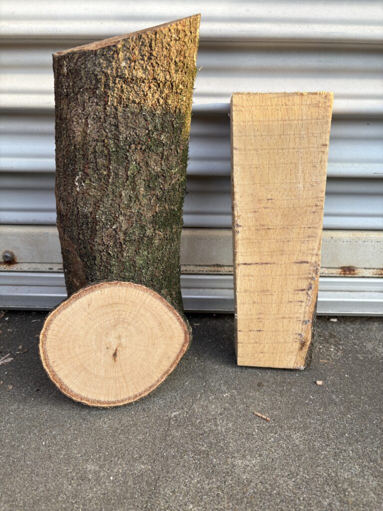 今回は伐採した丸太から、輪切りと板材を製材してみました。